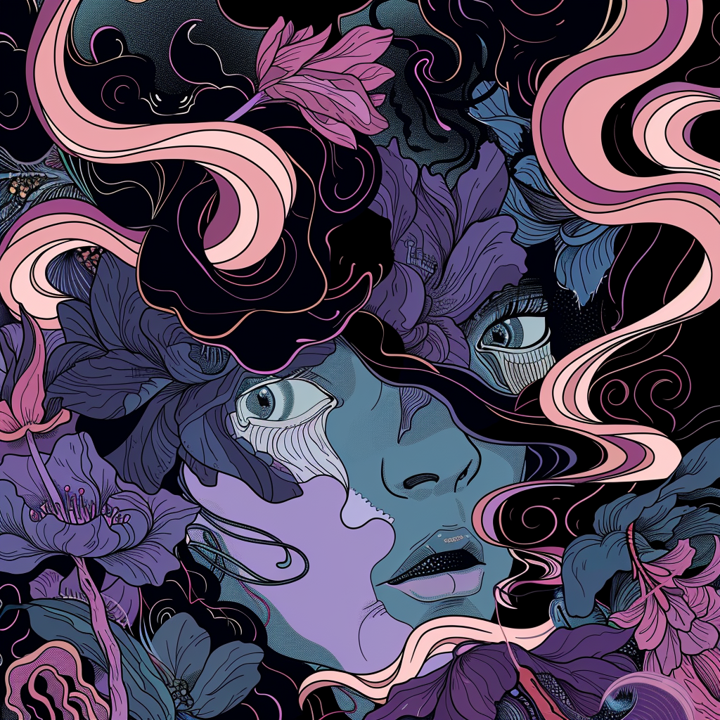Black Purple Floral Swirl Leaf Face Unisex Tee