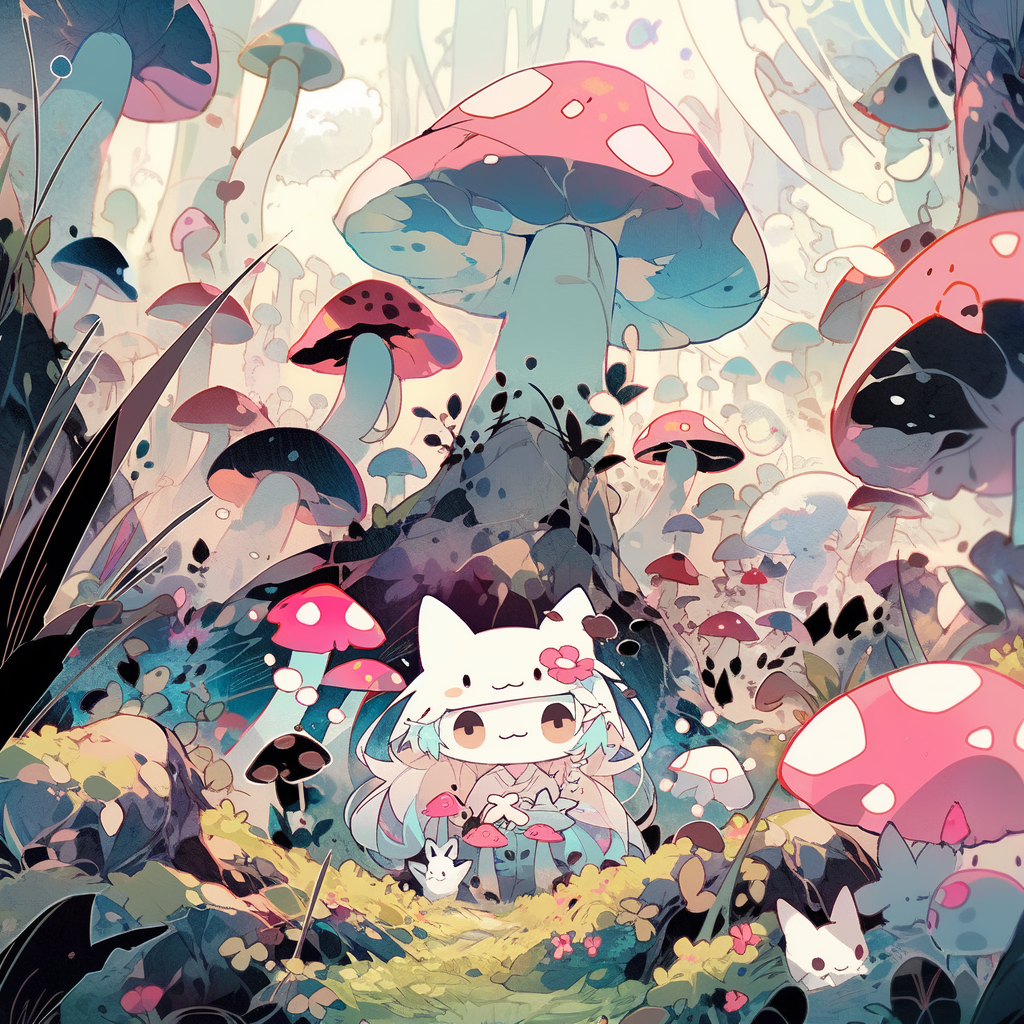 Chibi Happy Shroom Garden Anime Cat Girl Mooms Unisex Tee