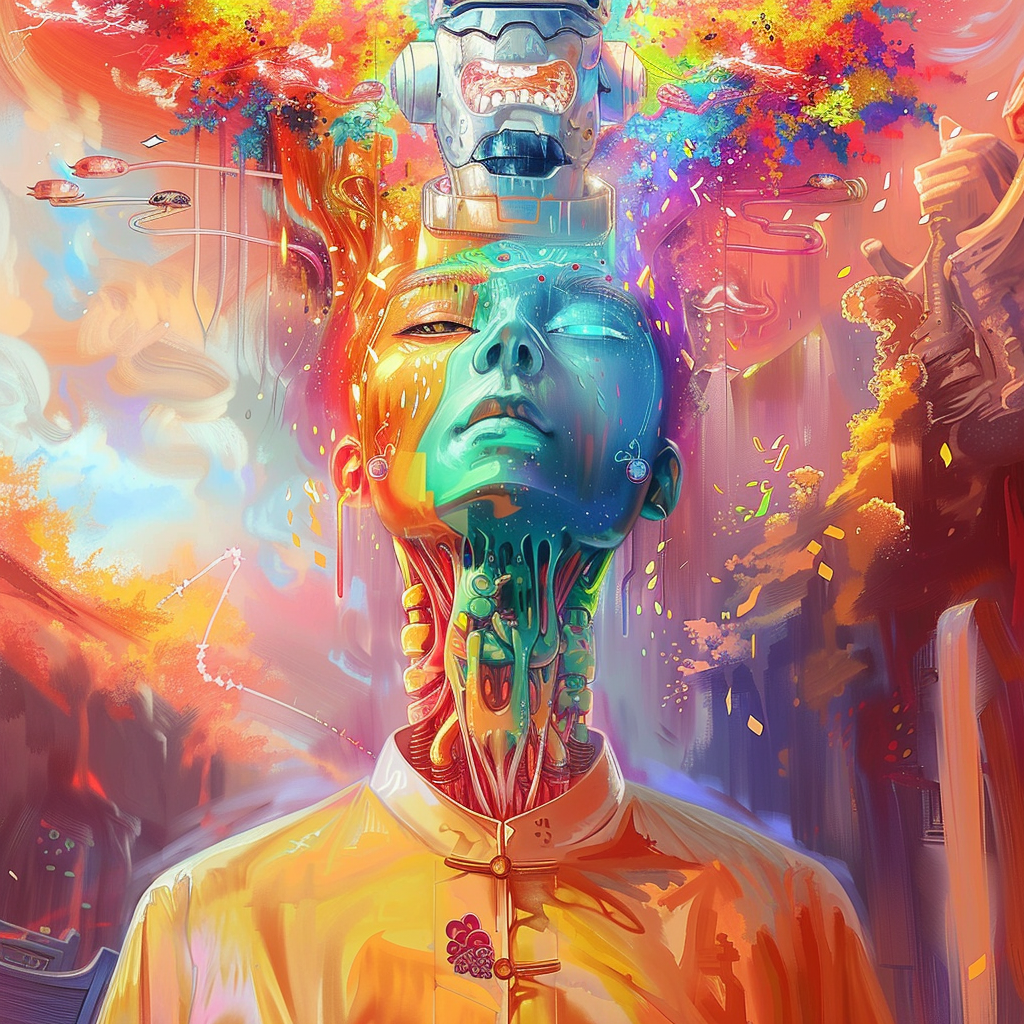 Fusion Human Asian Cloud lookup Robotic Unisex Tee