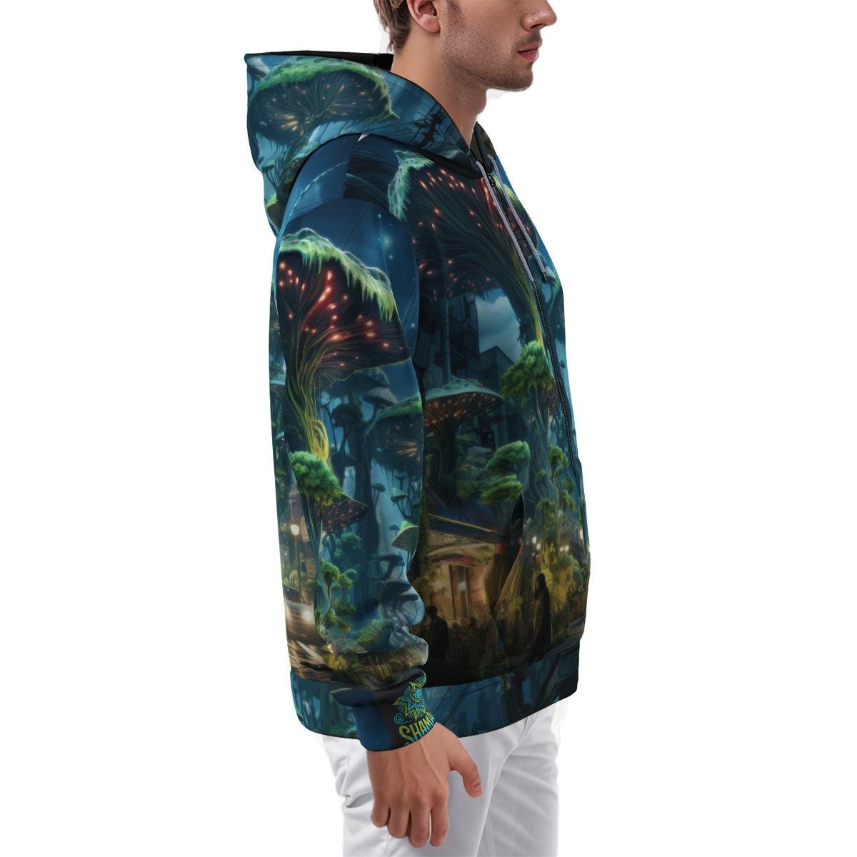 Green Mushroom Moss Future City Psychedelia Festival EDM Psy Zip Hoodie
