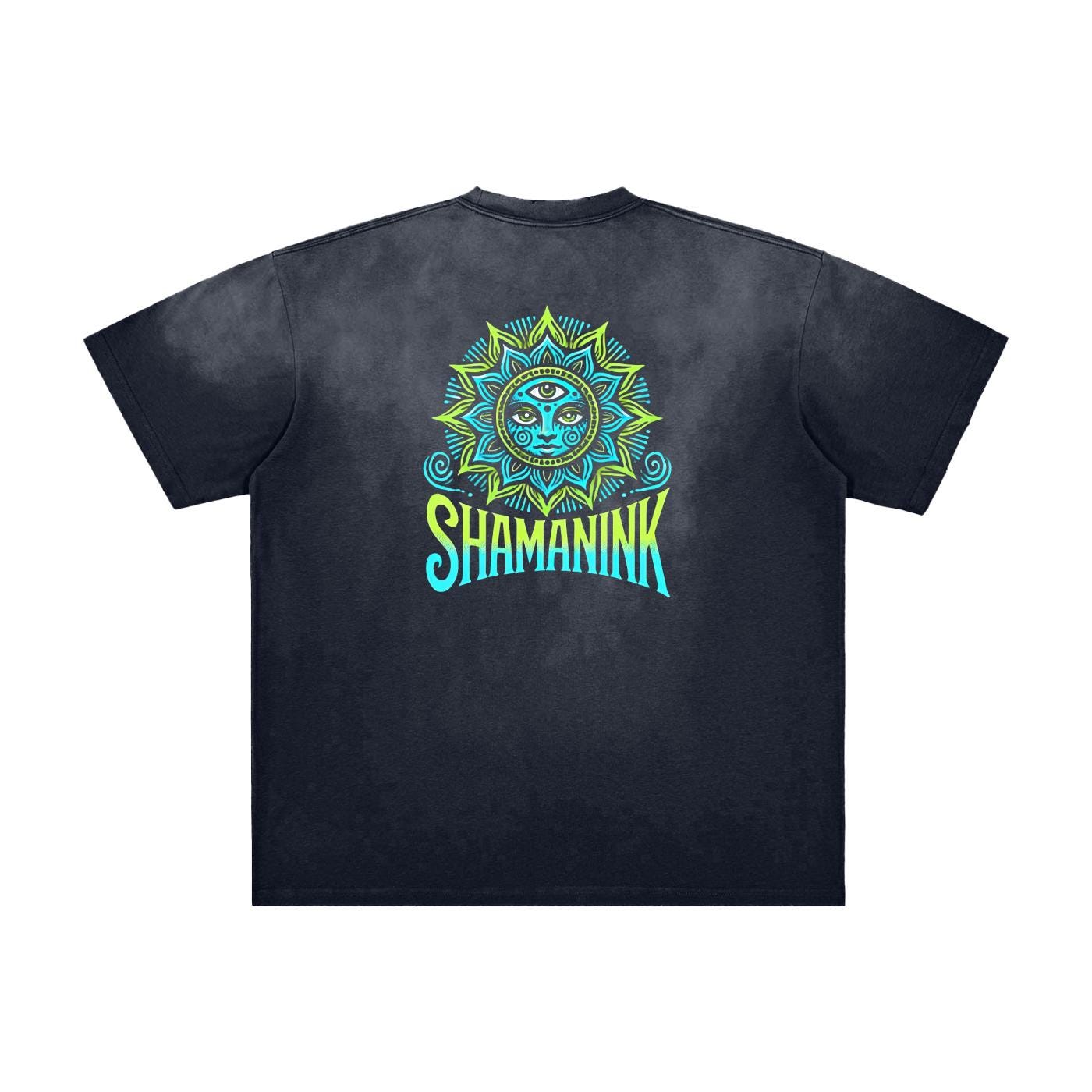 Kah Sun Ray Crown Figural Contrast Grunge Violet Psy Festival Wash Vintage Washed Frayed T-Shirt