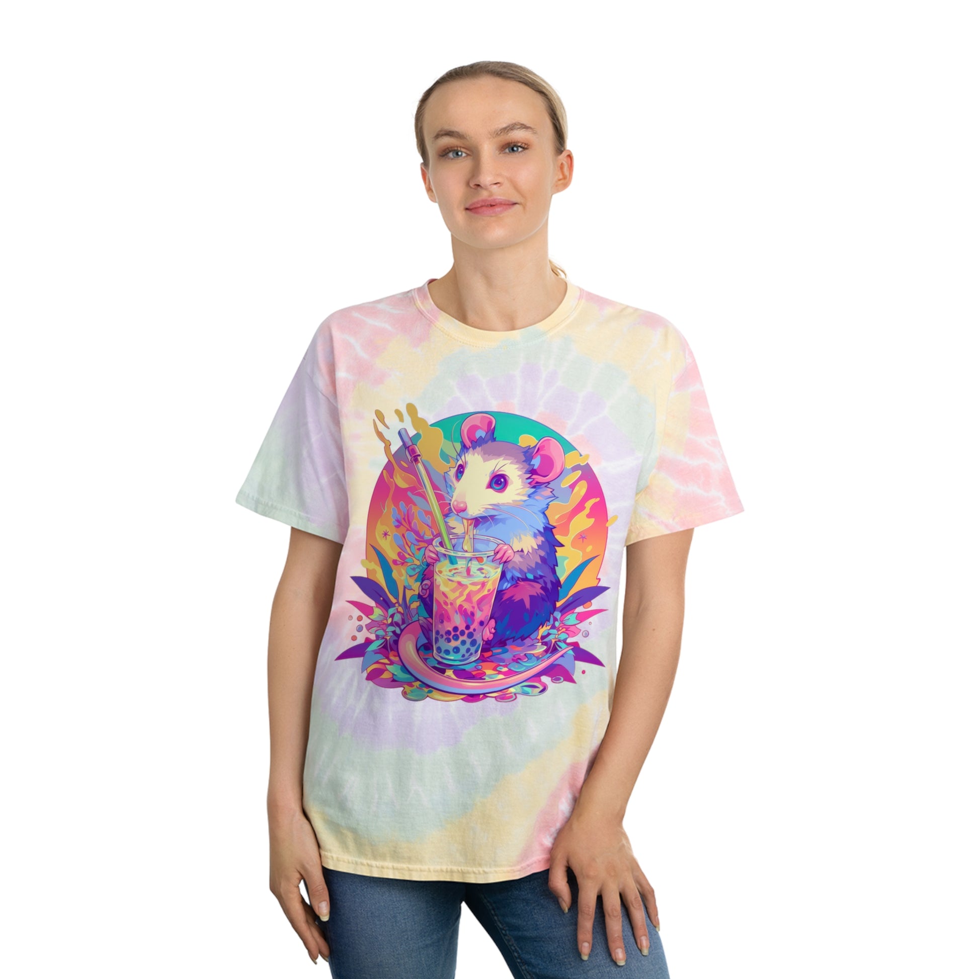 Pastel Opossum Psychedelic Swirl Boba Drip Tee Tie-Dye Tee, Spiral