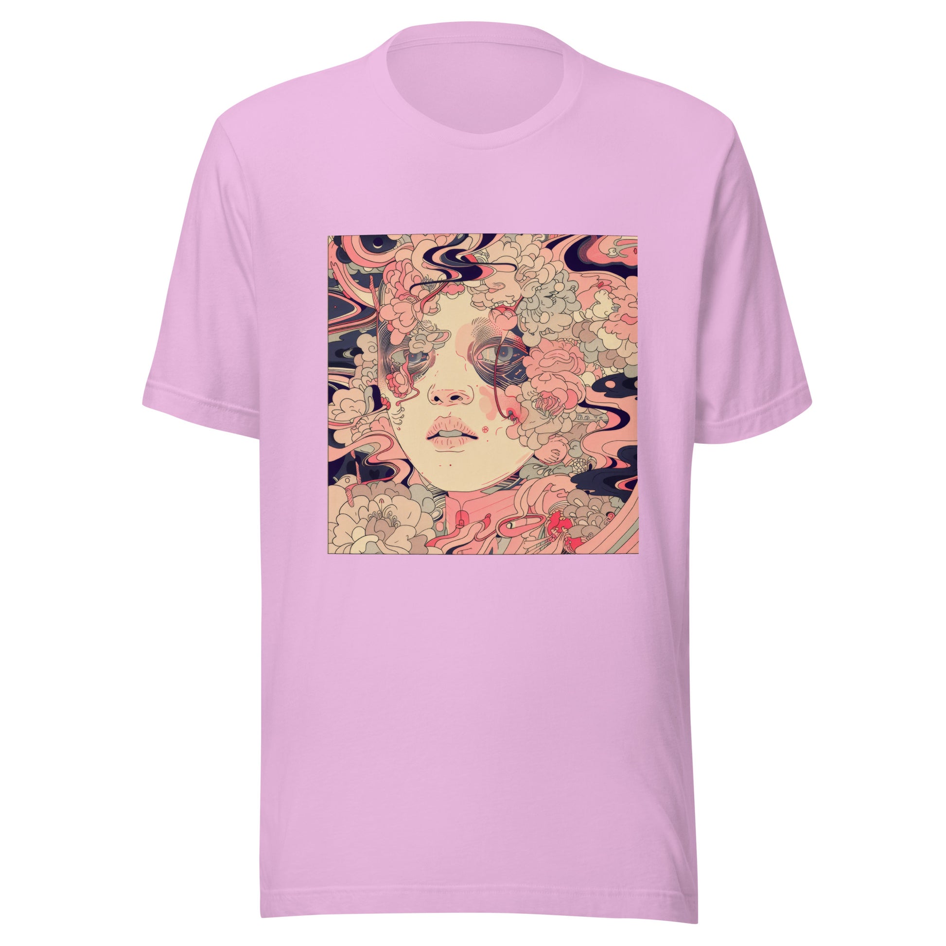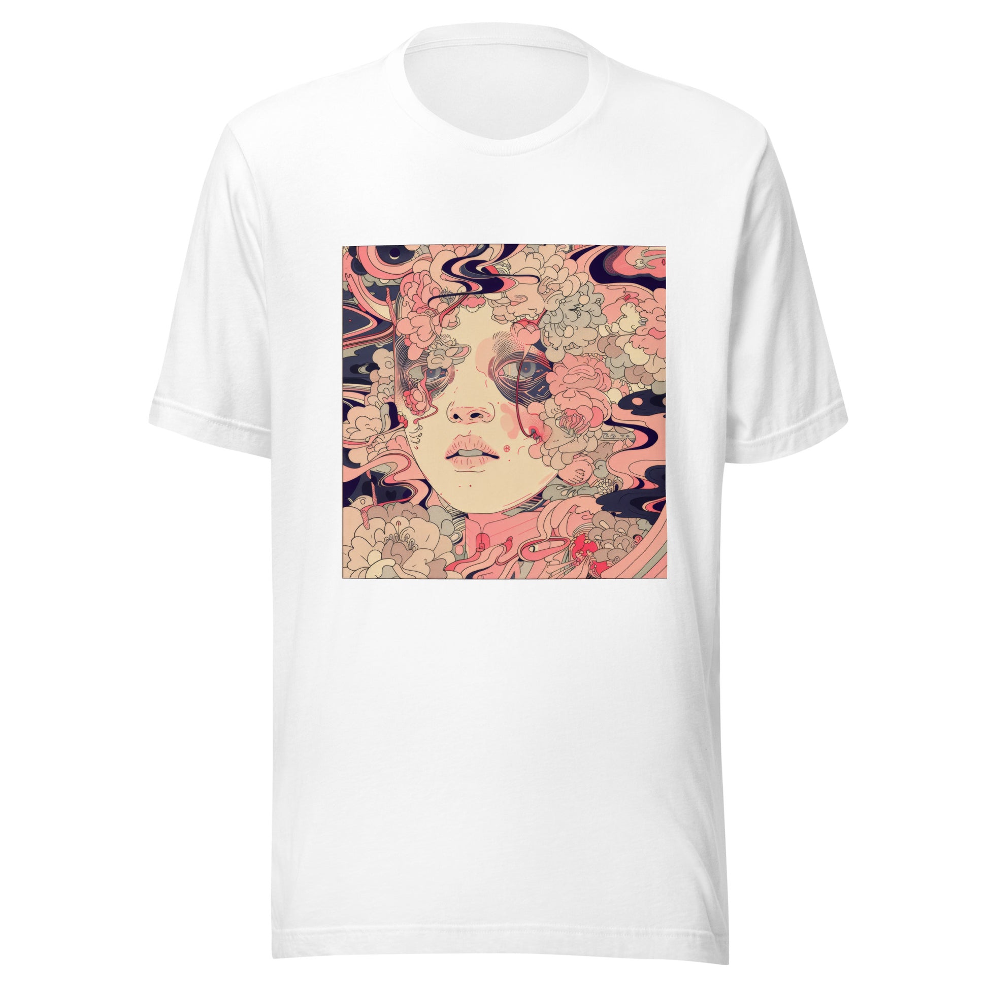Pink Floral Swirl Face Boho Avant Anime Unisex Tee