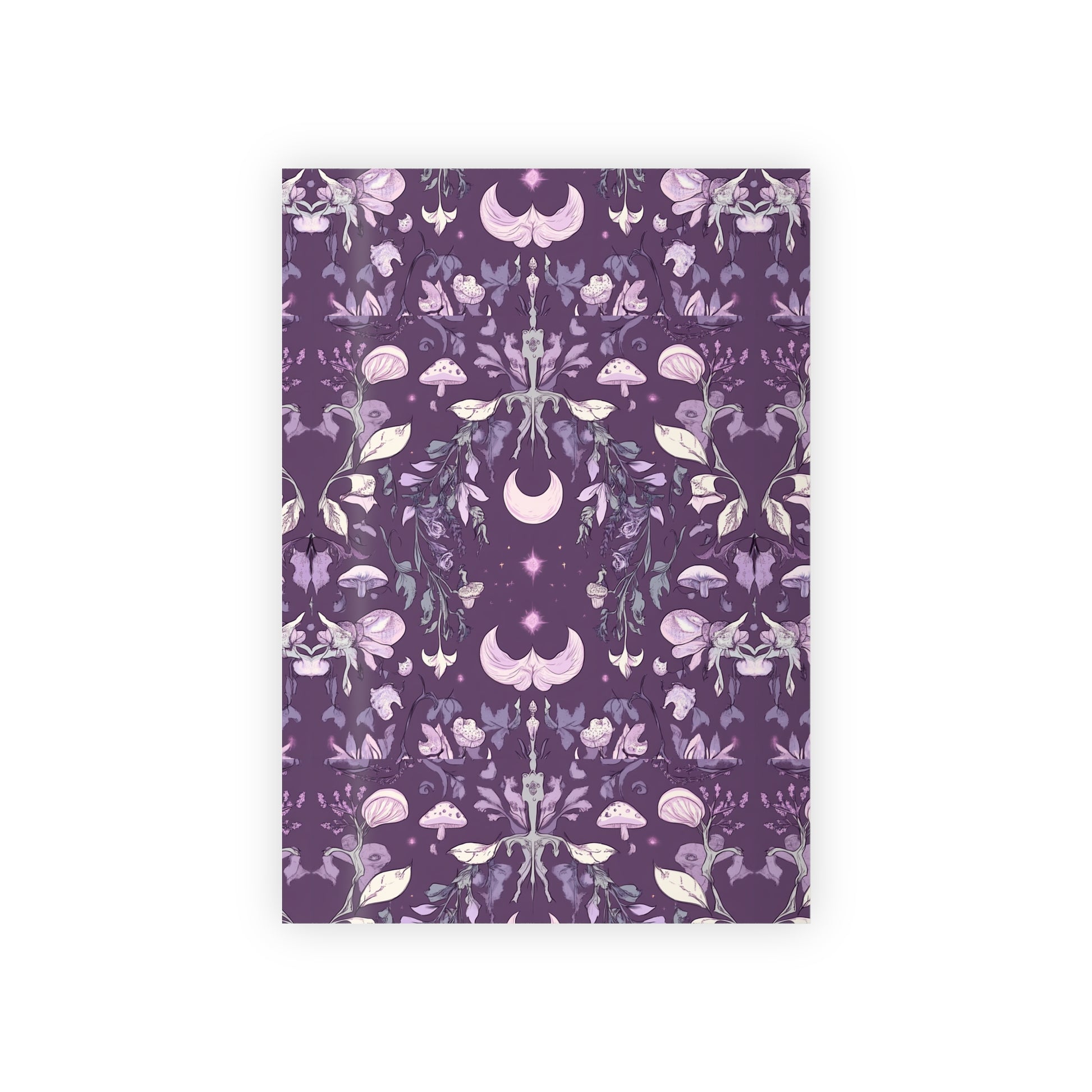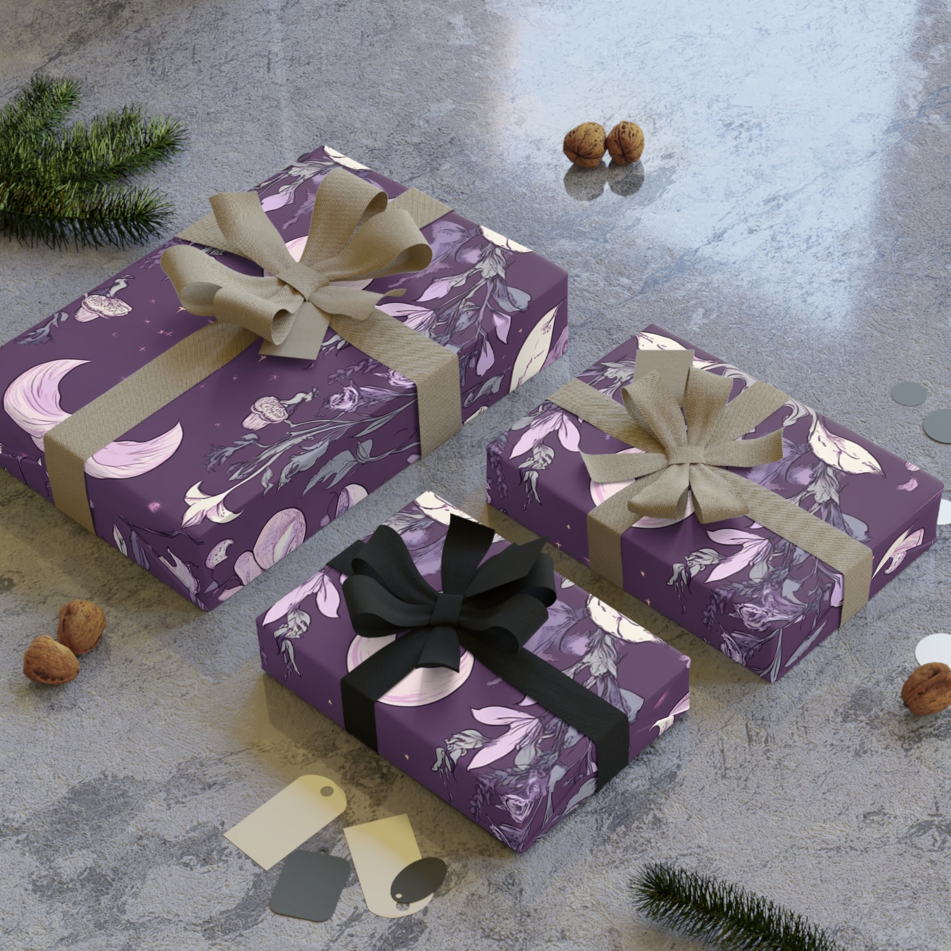 Purple Crescent Moon Leave Foliage Boho Gift Wrapping Paper Rolls, 1pc