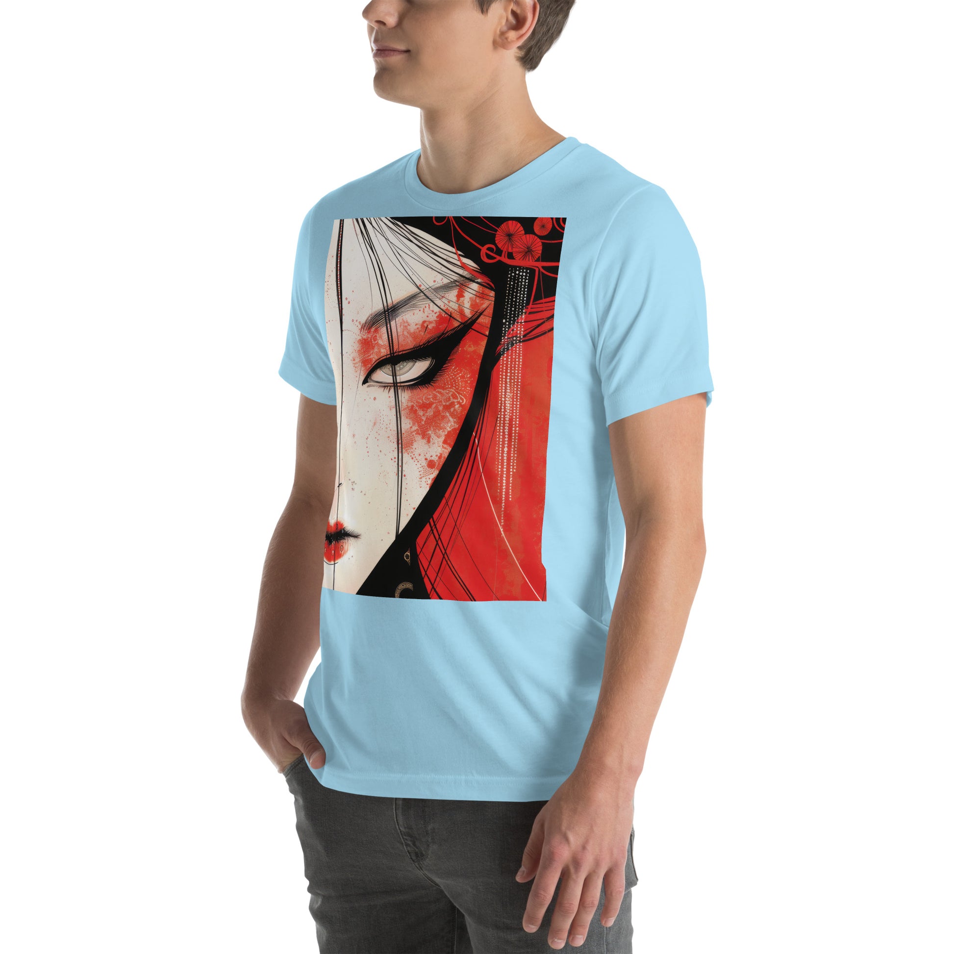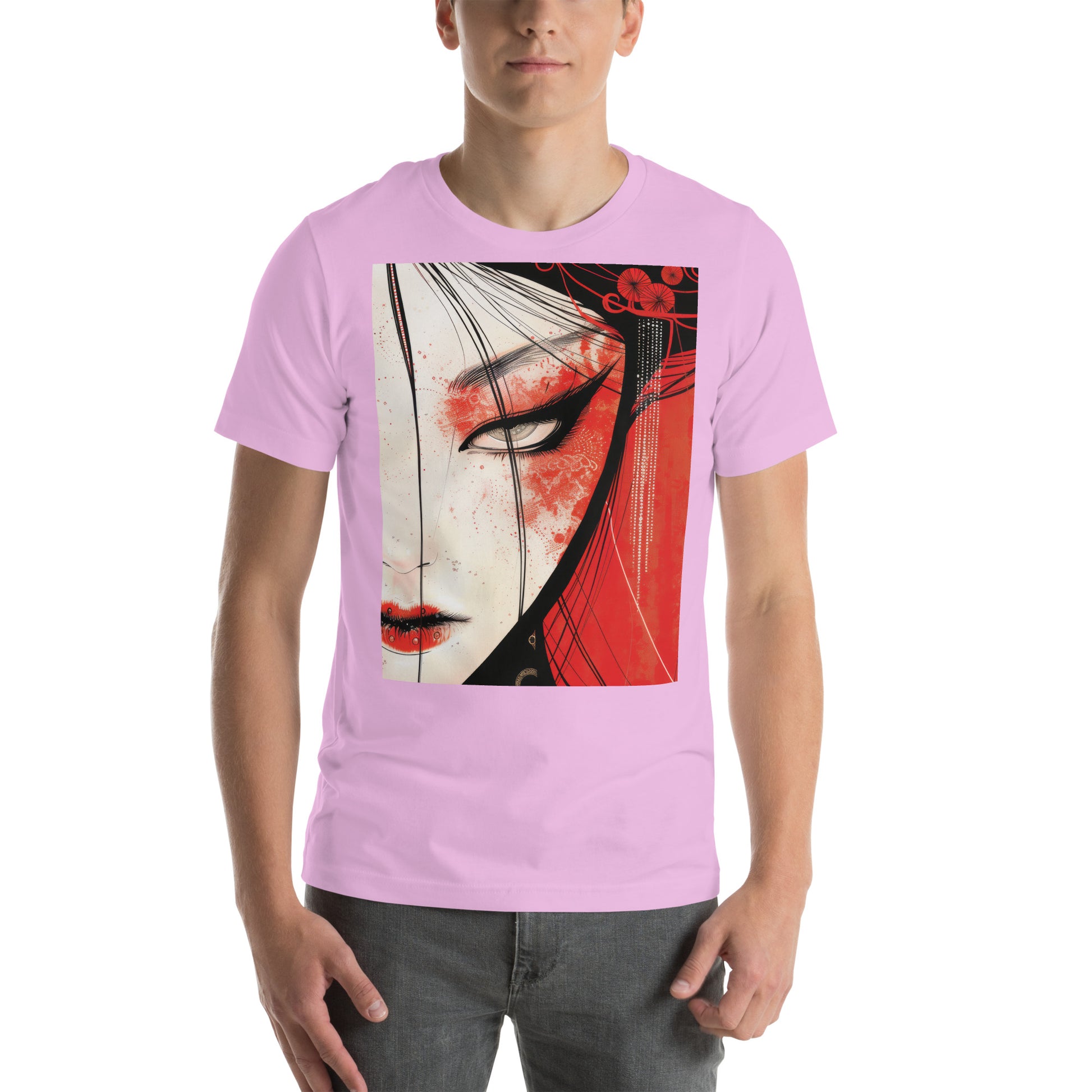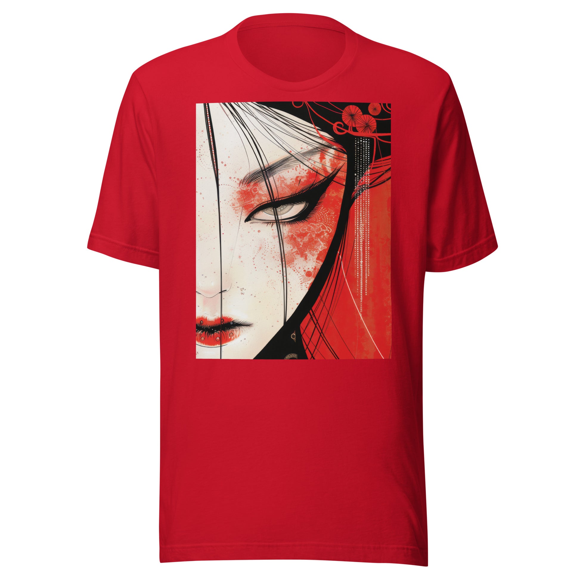 Red Face Geisha Stark Anime Yokai Close up Profile Unisex Tee