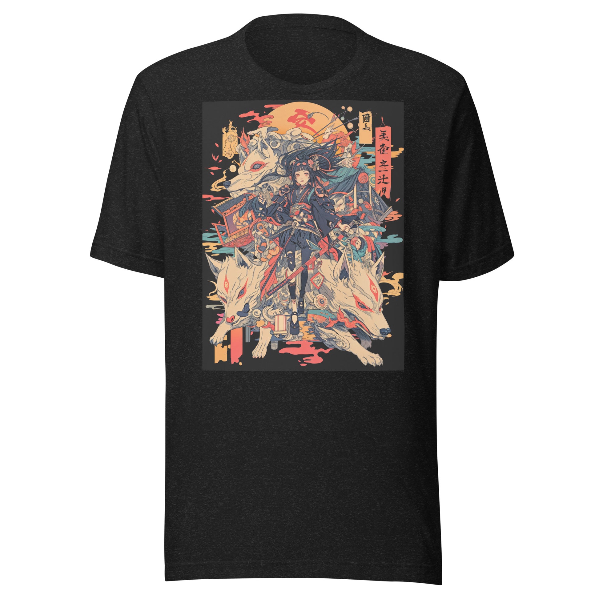 Sepia Fox Yokai Samurai Scroll Girl Unisex Tee