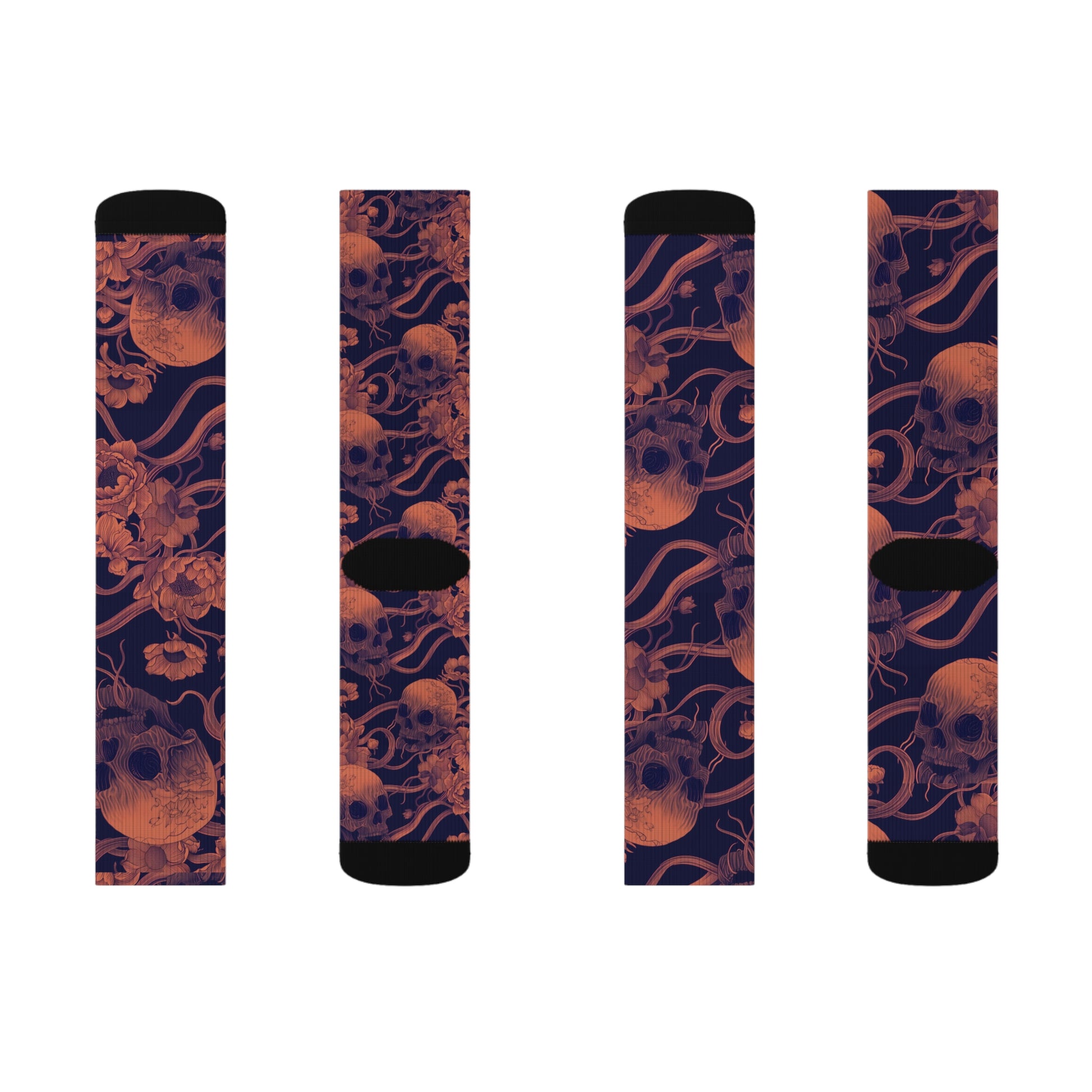 Sepia Mauve Black Skull Vine Sublimation Socks