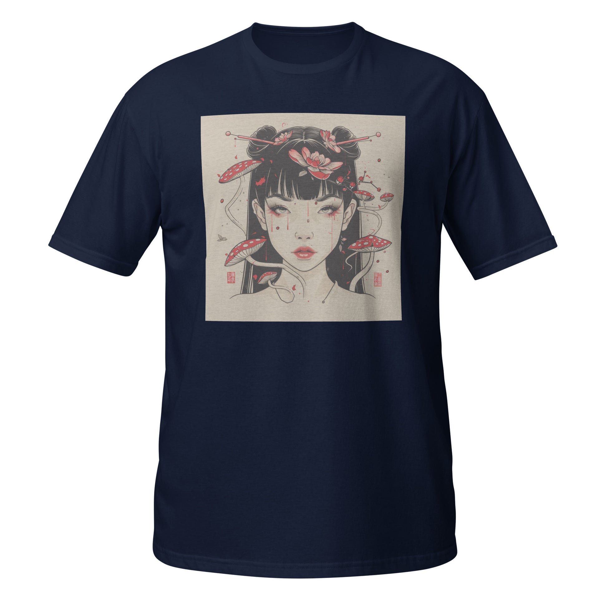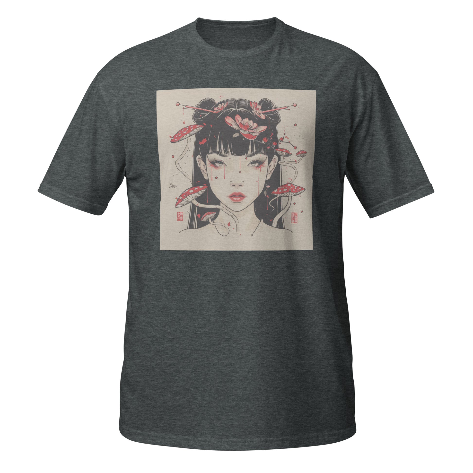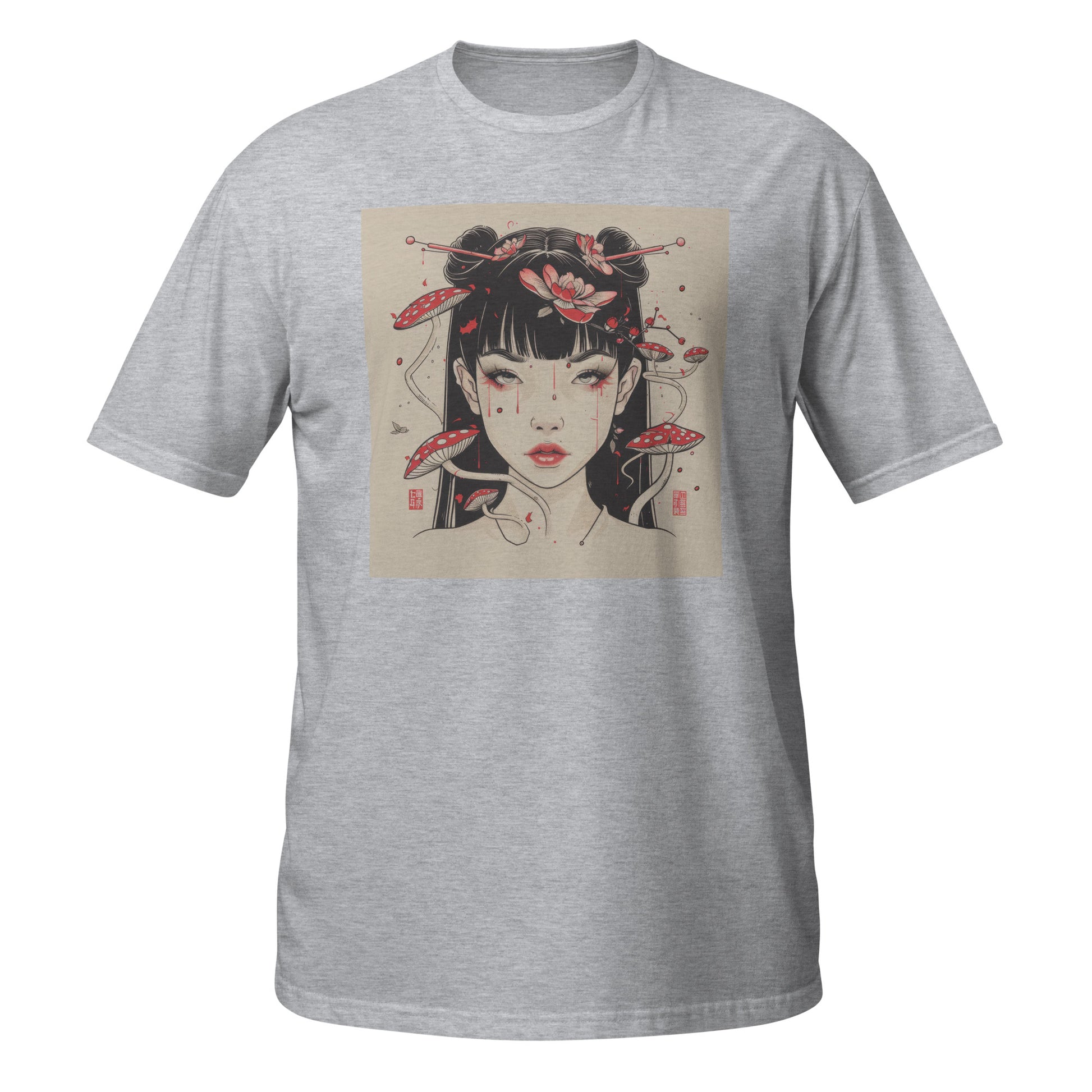 Sepia Mushroom Ink Tattoo Anime Girl Unisex Tee