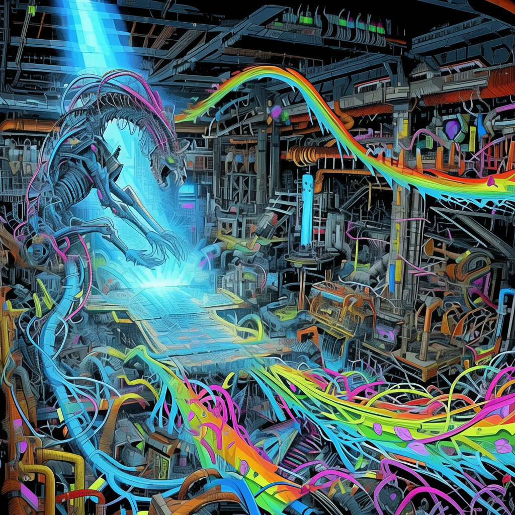 Wire Meca Robotic Psychedelic Rainbow Light Shaft Anime Unisex Tee