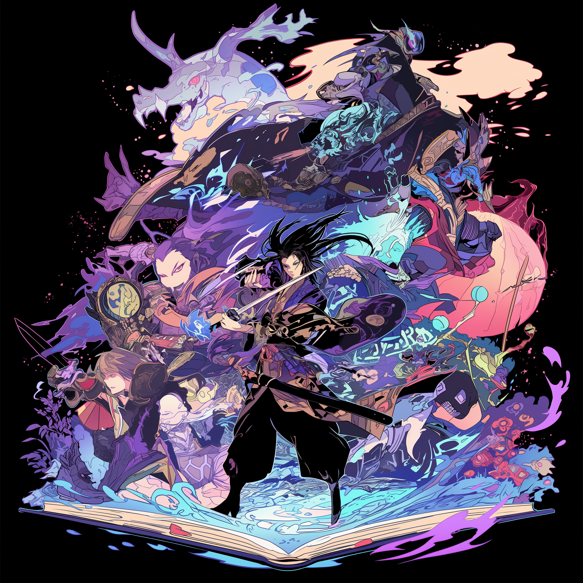 Yokai Scroll Samurai Book Man Unisex Tee